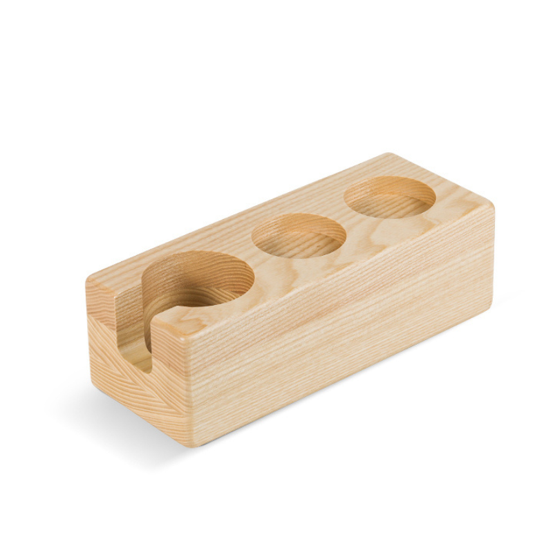 Crafted from Fraxinus mandshurica, this versatile station offers a stable and elegant platform for tamping, distributing, and storing your coffee utensils. Each piece showcases unique textures and durability.