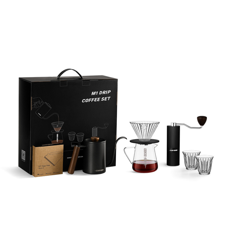 - Complete set: Includes a manual coffee grinder, two glasses, a pour-over kettle, a coffee maker, a glass coffee filter and 40 V60 paper filters.
