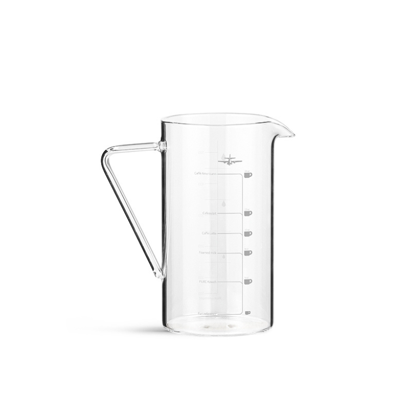 A high-quality tool designed for precision coffee brewing. Made of high-borosilicate glass, this measuring cup is heat-resistant and durable, perfect for accurate measurements of coffee, espresso, or other liquids.