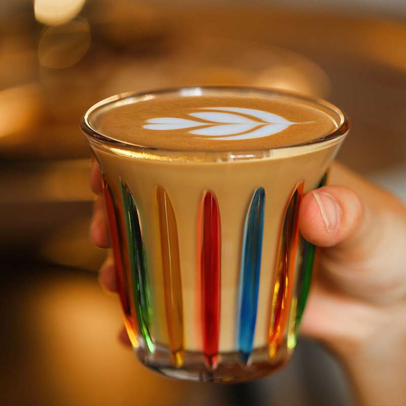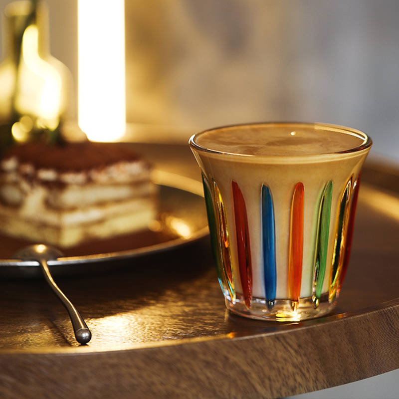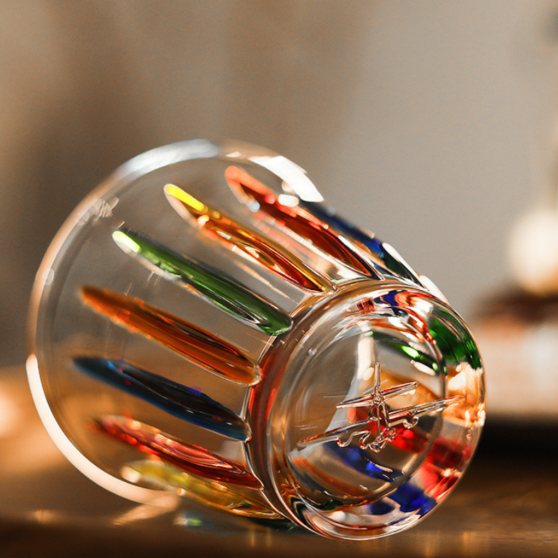 A beautifully designed glass mug that combines retro aesthetics with modern functionality. Inspired by the Wright brothers and European church windows, this hand-painted mug features vibrant colors and vertical ribs, making it a functional and artistic addition to your drinkware collection.