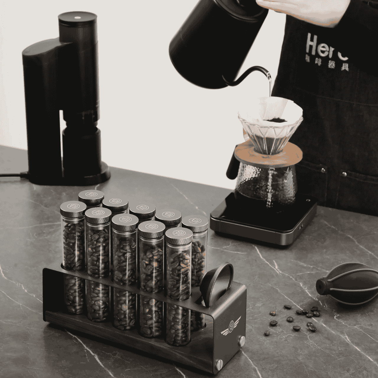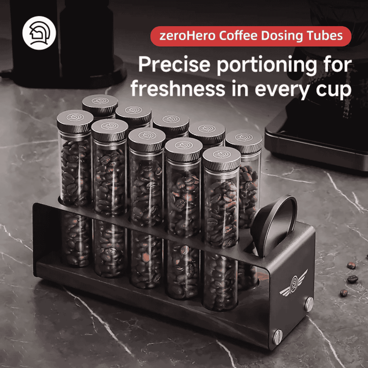 Die zeroHero Coffee Dosing Tubes kombinieren fortschrittliche Frischhaltungstechnologie mit präziser Portionierung für optimale Kaffeelagerung. Das Einwegventil-System, sichere Materialien und der exklusive Aufbewahrungsständer machen sie zur idealen Lösung für Zuhause, Büro und unterwegs.