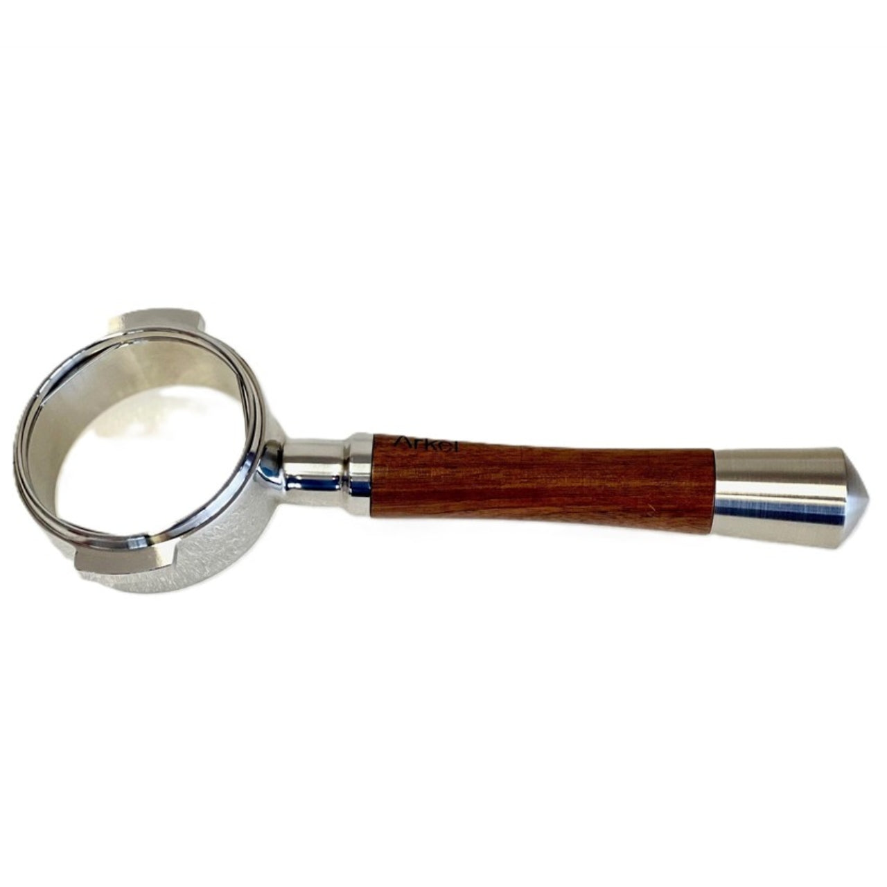 Arkel - Bodenloser Siebträger mit Nussbaum-Griff