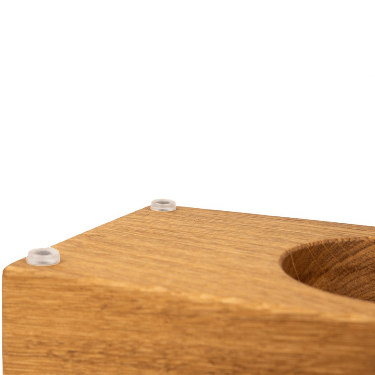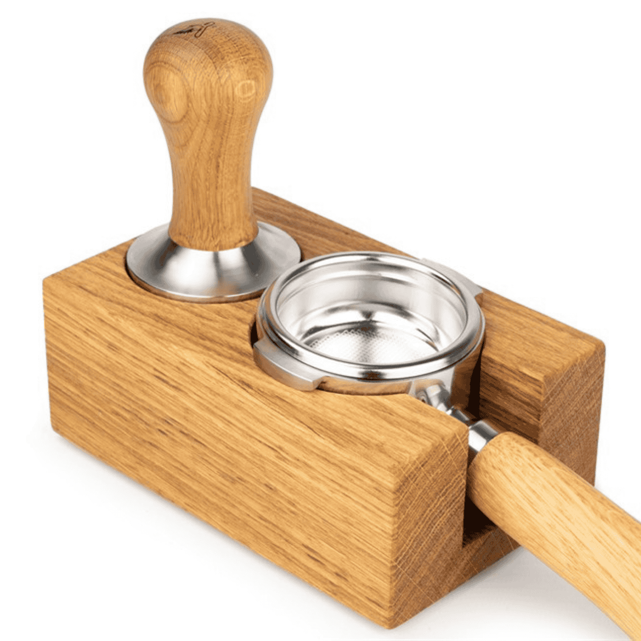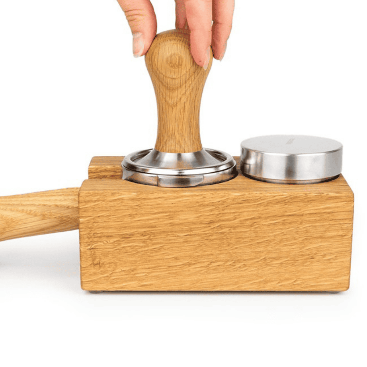 Die Tampingstation "Duo" richtet sich an Home Baristas, die auf begrenztem Raum nicht auf Funktionalität und Ästhetik verzichten möchten. Die besonders kompakten Abmessungen und die natürliche Ausstrahlung des Holzes machen sie zur eleganten Lösung für jede Küchenumgebung.
