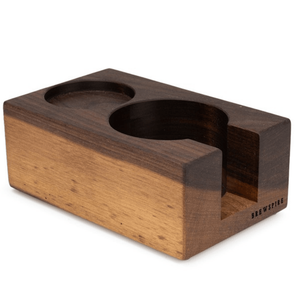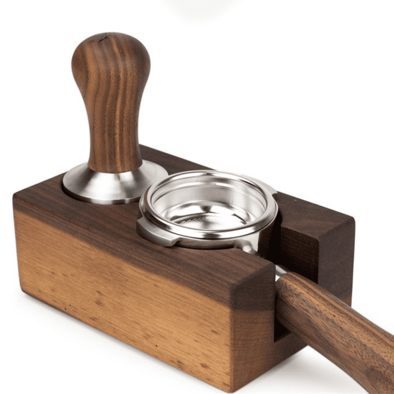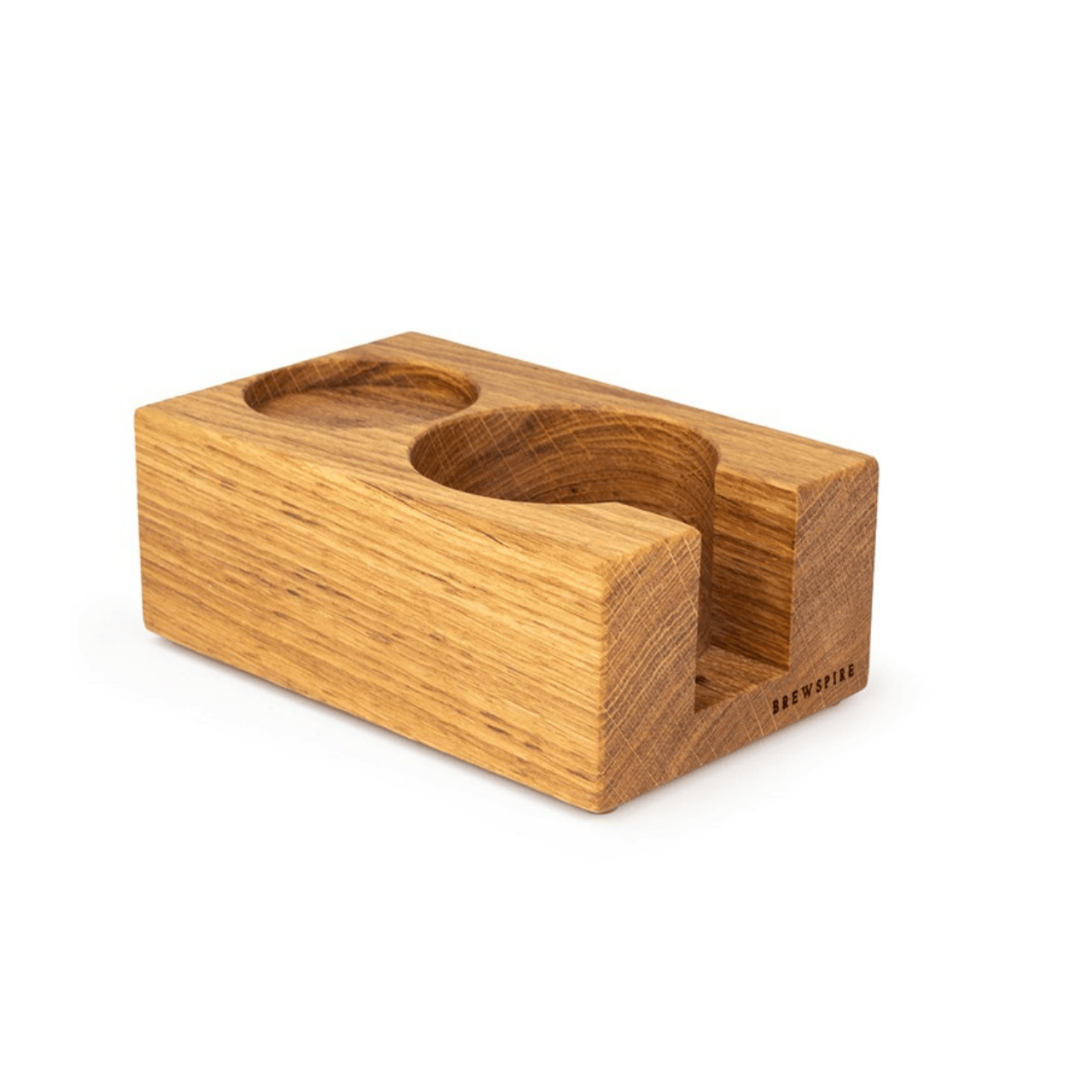 Die Tampingstation "Duo" richtet sich an Home Baristas, die auf begrenztem Raum nicht auf Funktionalität und Ästhetik verzichten möchten. Die besonders kompakten Abmessungen und die natürliche Ausstrahlung des Holzes machen sie zur eleganten Lösung für jede Küchenumgebung.