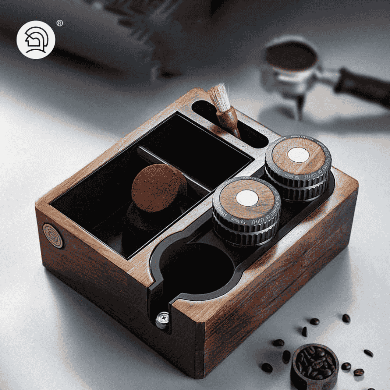 Die Zerohero Multi-functional Knock Box vereint Tamping, Verteilen, Ausklopfen und Aufbewahrung in einer kompakten Einheit. Das Design hält die Kaffee-Ecke aufgeräumt und stilvoll mit Multi-Slot-Organisation und hochwertiger Handwerkskunst.